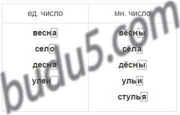Прочитай имена существительные. Выпиши в один столбик имена существительные в форме единственного числа, в другой столбик – множественного числа. Выдели окончания в словах.