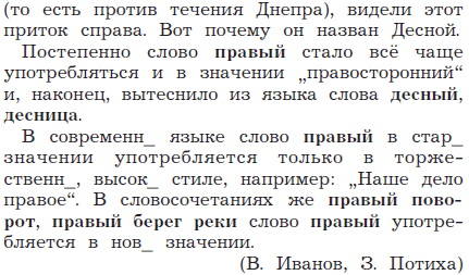 Прочитай текст. Как изменилось значение прилагательного правый в процессе развития языка?