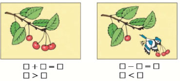Рассмотри схему для записи. В записи есть знак -, значит, нужно узнать, сколько вишенок осталось на ветке.