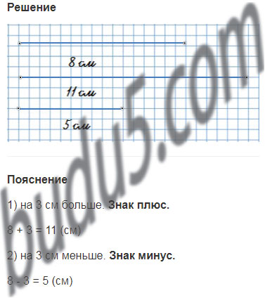 2. 1) Начерти отрезок длиной 8 см. Начерти ещё 2 отрезка, которые по длине будут отличаться от начерченного на 3 см.
