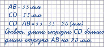 2. 1) Измерь отрезки AB и CD. На сколько миллиметров длина отрезка CD больше длины отрезка AB ?