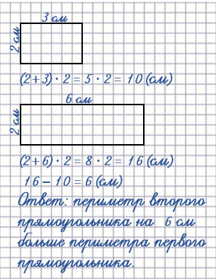 Ответ: на 6 см периметр второго прямоугольника больше периметра первого прямоугольника.