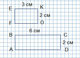 18. Начерти два прямоугольника: один со сторонами 2 см и 3 см, другой со сторонами 2 см и 6 см. На сколько сантиметров периметр одного из них больше периметра другого?