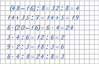 Вспомни порядок выполнения действий при нахождении значения числовых выражений со скобками и без них.