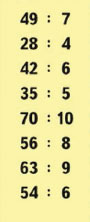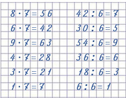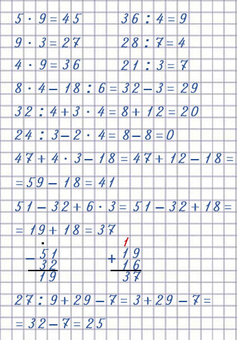 | 28 : 7 = 4 | 51 - 32 + 6 • 3 = 37 |