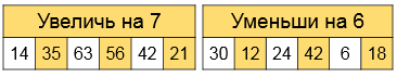 | 55 - (20 + 8) | 14 + 35 : 7 |