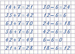 | 42 - 16 - 20 = 6 | 36 : 9 • 7 = 28 |