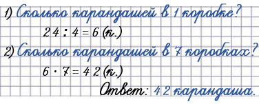 117. В 4 одинаковые коробки разложили поровну 24 карандаша. Сколько карандашей в 7 таких коробках?