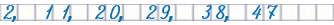 2) Определи, по какому правилу составлен полученный ряд чисел, и запиши в нём ещё два числа.