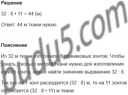 21. Из 32 м ткани изготовили 8 одинаковых больших зонтов от солнца. Сколько метров такой ткани нужно, чтобы изготовить 11 таких зонтов?