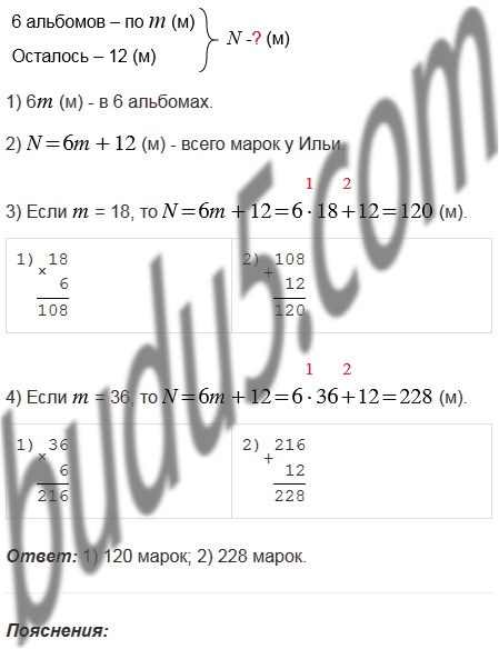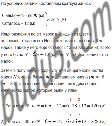марок в каждый из шести альбомов, и еще 12 марок у него осталось. Составьте формулу для вычисления количества марок, которые есть у Ильи, и вычислите это количество, если: 1)