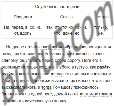 1. Выпишите из текста упр. 494 служебные части речи, распределяя их в графах таблицы.