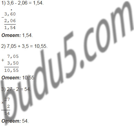 1) на 2,06 меньше 3,6; 3) в 2 раза больше 27;