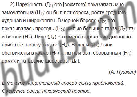 2) Наружность его [вожатого] показалась мне замечательна: он был лет сорока, росту среднего, худощав и широкоплеч. В чёрной бороде его показывалась проседь; живые большие глаза так и бегали. Лицо его имело выражение довольно приятное, но плутовское. Волосы были обстрижены в кружок; на нём был оборванный армяк и татарские шаровары.