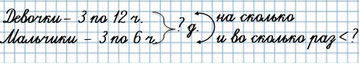 2) Используя решение предыдущей задачи, узнай, на сколько в хоре меньше мальчиков, чем девочек. Во сколько раз мальчиков меньше, чем девочек?