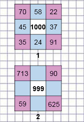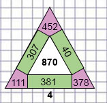 В занимательных рамках сумма всех чисел на каждой стороне должна равняться числу в центре.