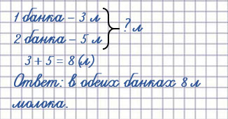 2) В одной банке 3 л молока, а во второй 5 л. Сколько литров молока в обеих банках?