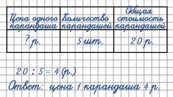 5) Коля купил 5 карандашей и заплатил за них 20 р. Найди цену одного карандаша?