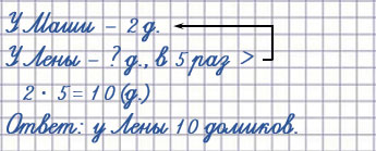 1) У Маши было 2 игрушечных домика, а у Лены - в 5 раз больше, чем у Маши. Сколько домиков у Лены?