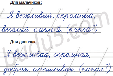 А что ты можешь рассказать о себе: какой ты? какая ты? Если нужно, добавь слова, которых нет в подсказках. Запиши в тетрадь.