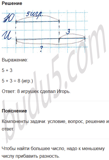 Задание № 4. Для новогодней ёлки Юра сделал 5 игрушек, а Игорь на 3 игрушки больше. Сколько игрушек сделал Игорь?