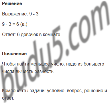 Задание № 2. В комнате 9 мальчиков, а девочек на 3 меньше. Сколько девочек в комнате?