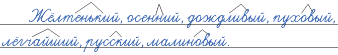 Жёлтоватый, осенний, дождливый, пушистый, легонький, русский, малиновый.