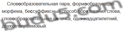 Слов..образовательная пара, форм..образующая морфема, бе. .суффиксный способ обр..зования слова, слов..образовательная ц..почка, оди(н, нн)адцатилетний, двухкил..граммовый.