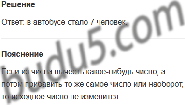 Задание № 6. В автобусе ехало 7 человек. На остановке вышло 2 человека и вошло 2. Сколько человек стало в автобусе?