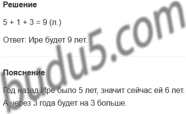 Задание № 9. Год назад Ире было 5 лет. Сколько лет ей будет через 3 года?