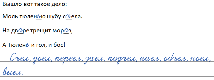 Вставим пропущенные буквы: тюленью - разделительный мягкий знак, съела - разделительный твёрдый знак, дворе - двор (безударная гласная), моро́з -о под ударением, тюлень - мягкий знак как показатель мягкости согласного.