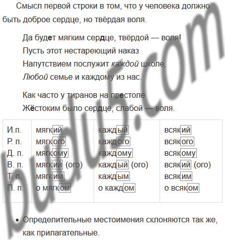 • Выделенные курсивом слова — определительные местоимения. Просклоняйте прилагательное мягкий и местоимения каждый и всякий. Сравните и сделайте вывод об особенностях склонения этих местоимений.
