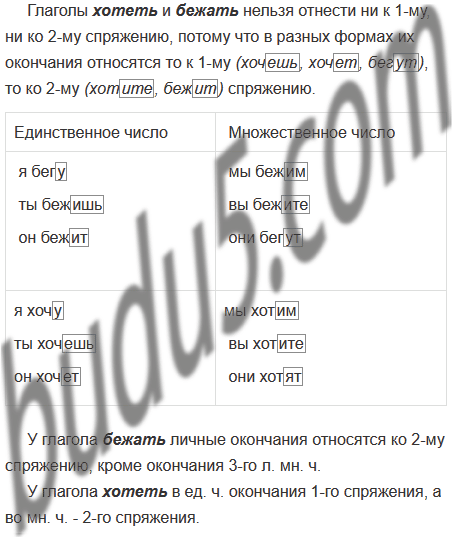 2. Проспрягайте глаголы хотеть, бежать, выделите личные окончания. В чём особенность спряжения этих глаголов?