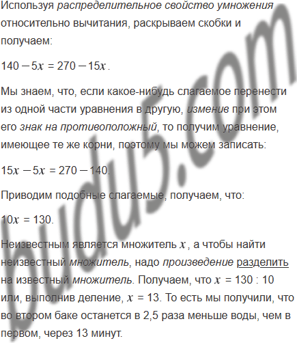 В одном баке было 140 л воды, а в другом - 108 л. В баках одновременно открыли краны. Из первого бака ежеминутно вытекает 5 л воды, а из второго - 6 л. Через сколько минут во втором баке останется в 2,5 раза меньше воды, чем в первом?