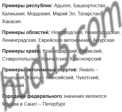 Рассмотрите карту на с. 154 – 155. С её помощью приведите примеры республик, областей, краёв, автономных округов. Назовите города федерального значения.