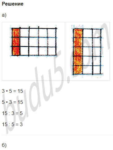 Задание № 1. Пользуясь таблицей умножения, построй графическую модель и составь 4 равенства из чисел: а) 3, 5, 15; б) 4, 9, 36.