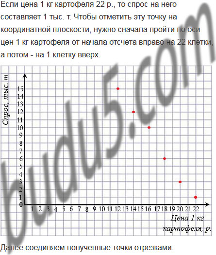 Представьте данные, приведенные в таблице, графически. Соединив полученные точки отрезками, постройте кривую спроса на картофель.