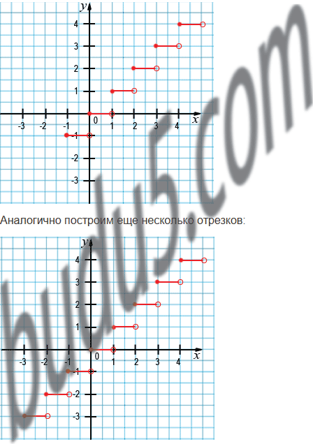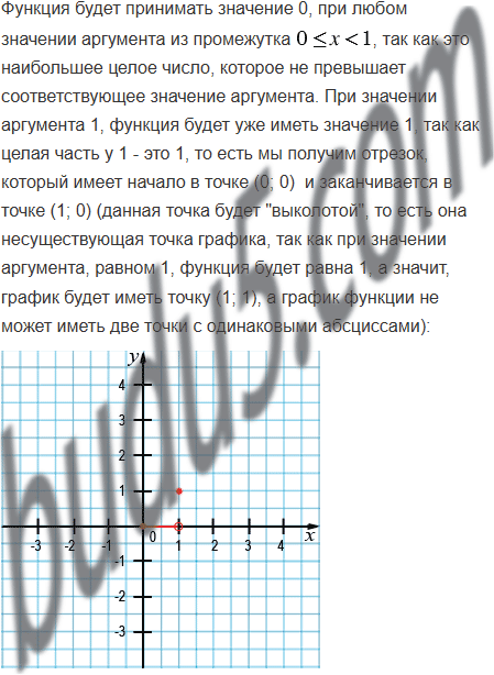 задана описательно: значение функции равно наибольшему целому числу, которое не превышает соответствующее значение аргумента. Постройте график этой функции.