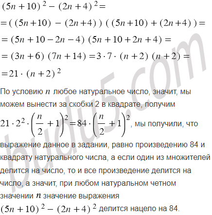 Можно ли утверждать, что при любом натуральном четном значении значение выражения делится нацело на 84?