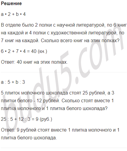 | а • 2 + b • 4 | а : 5 + b : 3 | (а + b) : 4 |