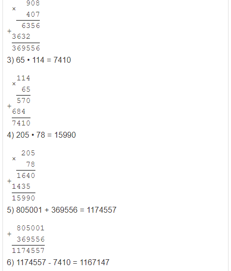 | б) 805001 + 908 • 407 - 65 • (403 - 289) - 205 • 78 |