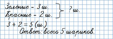 У Тани было 3 зелёных шарика и 2 красных. Сколько всего шариков было у Тани?