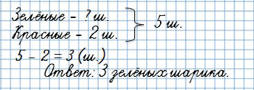 У Тани было 5 шариков, 2 шарика были красными, а остальные зелёные. Сколько зелёных шариков было у Тани?